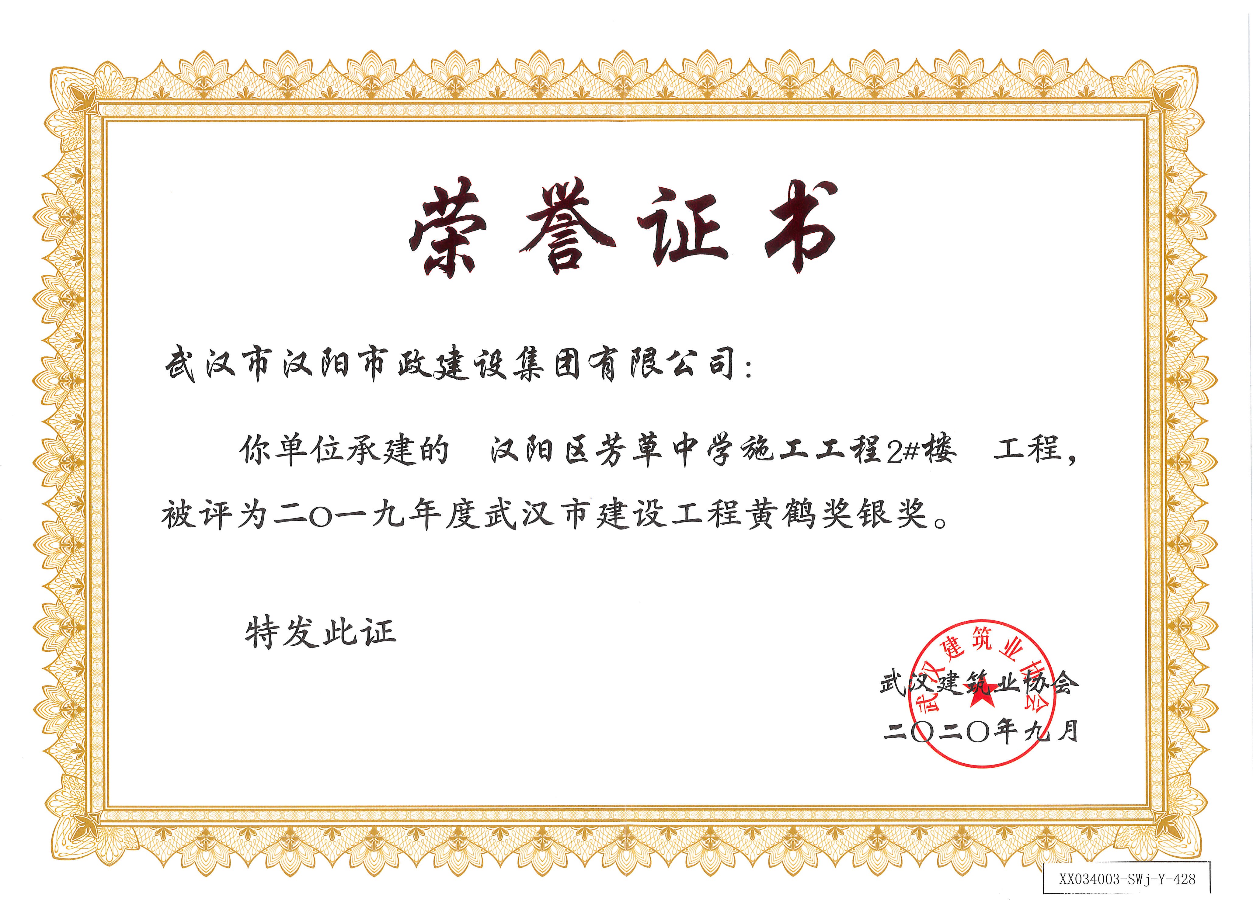 2019年漢陽區(qū)芳草中學施工工程2#樓工程黃鶴將 銀獎