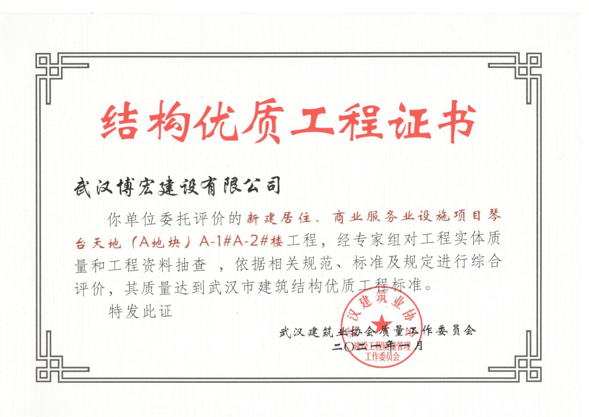 2021年武漢市結構優(yōu)質工程(琴臺天地(A地塊)1、2棟