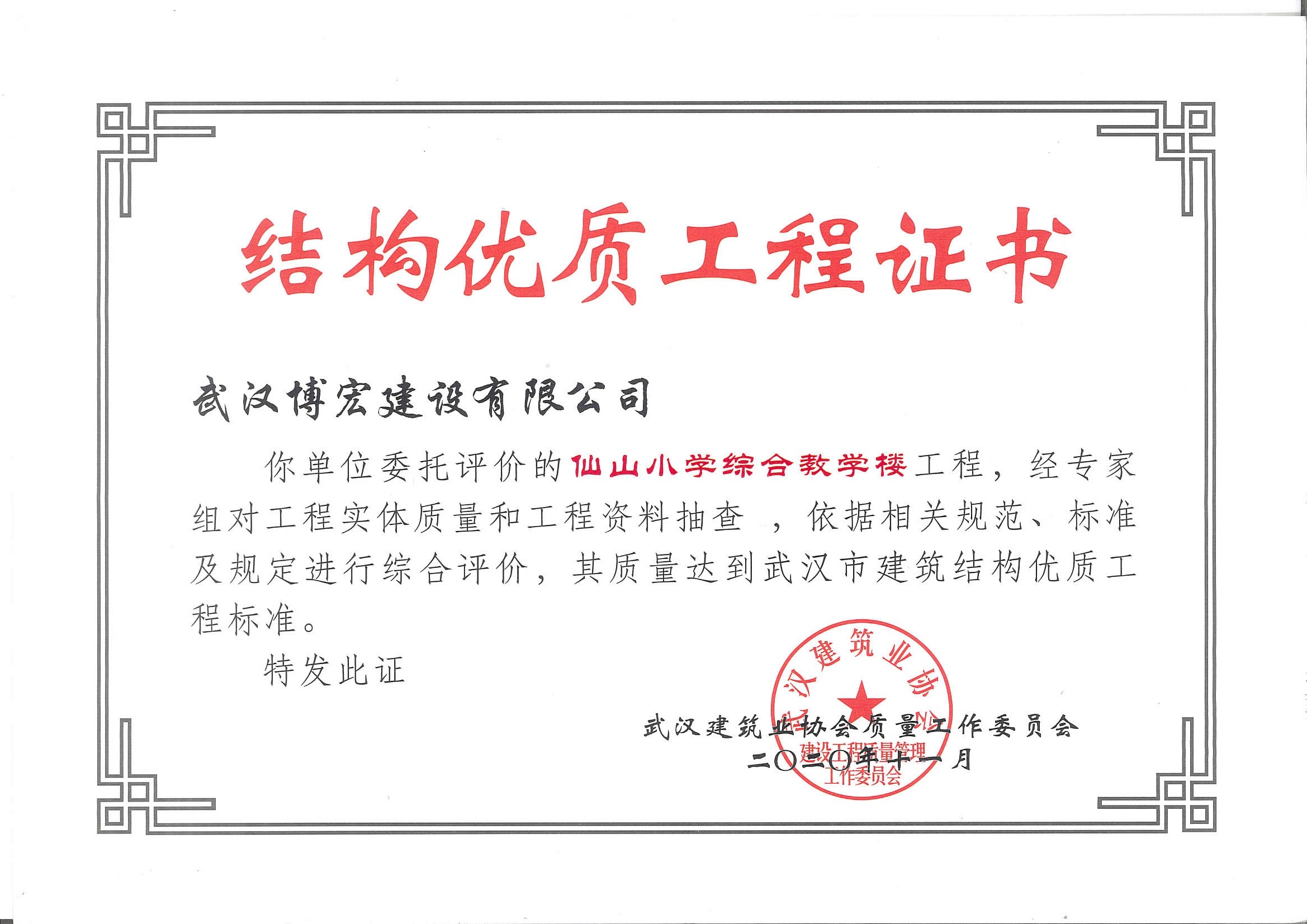 武漢市建筑結構優(yōu)質工程(仙山小學綜合樓)