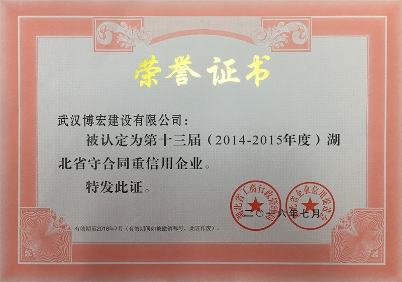 2014-2015年度湖北省守合同重信用企業(yè)