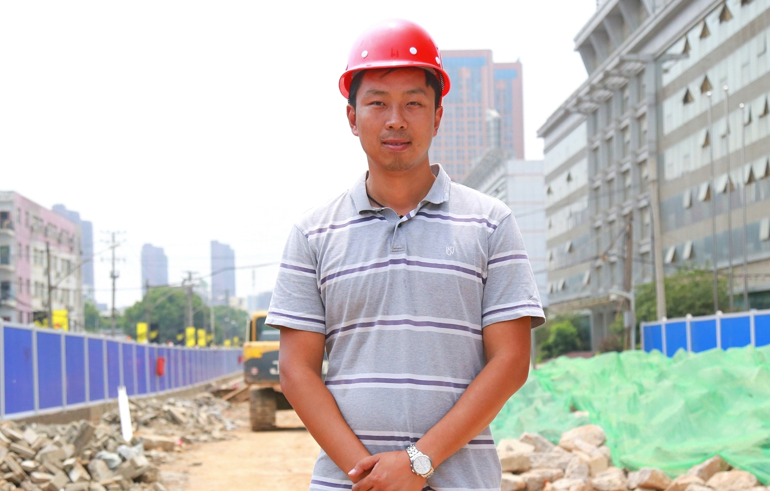八月的隆祥街工地,正值搶抓工期的關(guān)鍵時期,施工現(xiàn)場如火如荼,呈現(xiàn)一派熱火朝天的繁忙景象。在眾多忙碌的身影中,一位皮膚黝黑、身高一米九的壯漢顯得格外醒目,他頭頂烈日,神情專注地在現(xiàn)場指揮若定。為確保隆祥街如期刷黑通車,他帶領(lǐng)項目部人員爭分奪秒,晝夜奮戰(zhàn),連續(xù)高強度作業(yè),從不言苦累。而眼前這種施工場景,正是他十幾年如一日的工作常態(tài)。他就是博宏建設(shè)的項目經(jīng)理——童威。