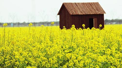 陽春三月,春風(fēng)如沐。桃花紅了、柳葉綠了,長江的水也暖和了。露水吻濕了片片綠葉,整個(gè)江城散發(fā)出如酒似蜜的清香。田里金黃的油菜花,成了蝴蝶的天地,美麗的蝴蝶在金黃色的舞臺(tái)上跳著柔和而優(yōu)美的舞姿,偶爾一陣微風(fēng)吹來,油菜花立刻涌起了高低起伏的“金浪花”,遠(yuǎn)遠(yuǎn)望去,令人美不勝收!——這是我記憶中的春天油菜花地。