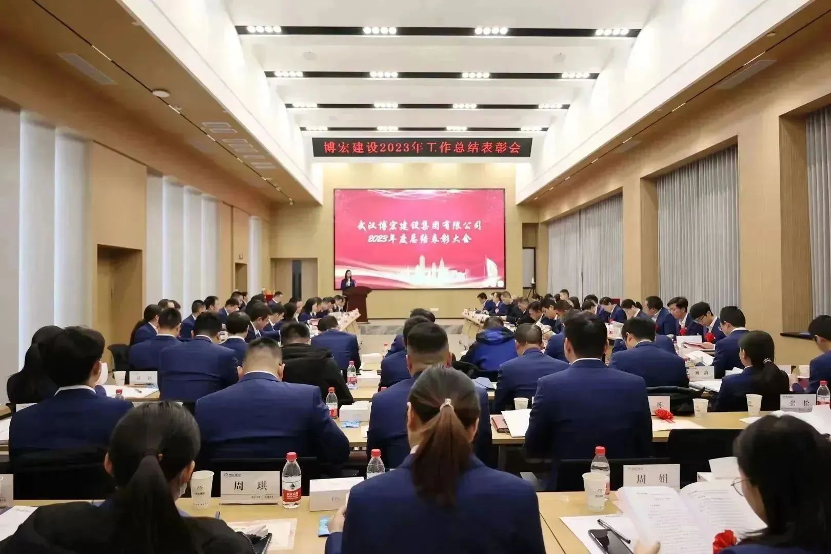 1月26日-27日,博宏建設(shè)2023年工作總結(jié)暨2024年工作研討會(huì)在公司31樓會(huì)議室隆重召開(kāi)。公司黨委班子、部門(mén)負(fù)責(zé)人、項(xiàng)目經(jīng)理和員工代表共84人參加會(huì)議。漢陽(yáng)市政黨委書(shū)記、董事長(zhǎng)嚴(yán)悌文受邀出席會(huì)議。會(huì)議由公司黨委副書(shū)記郭一清主持。