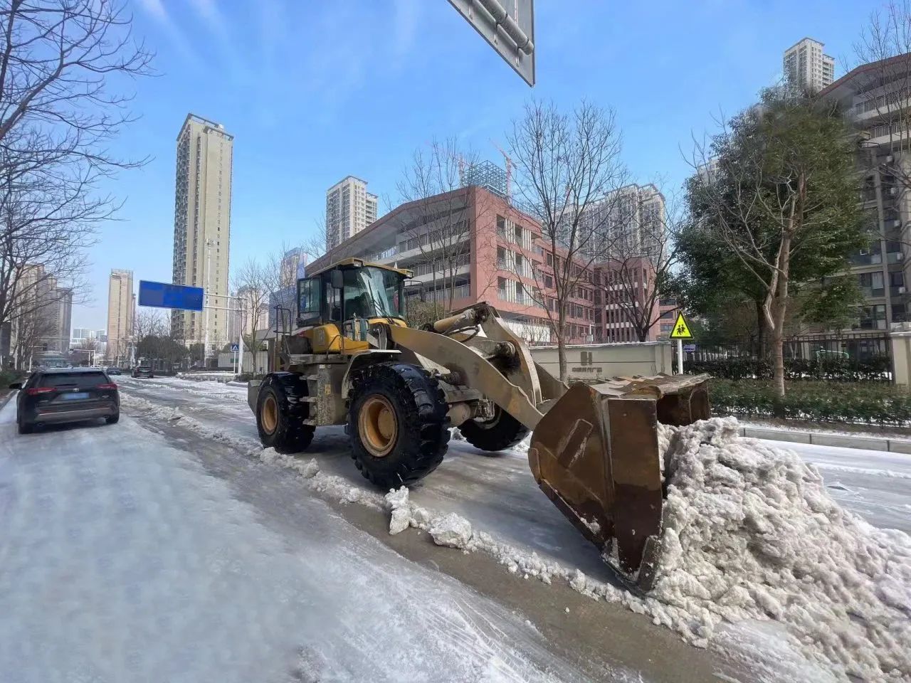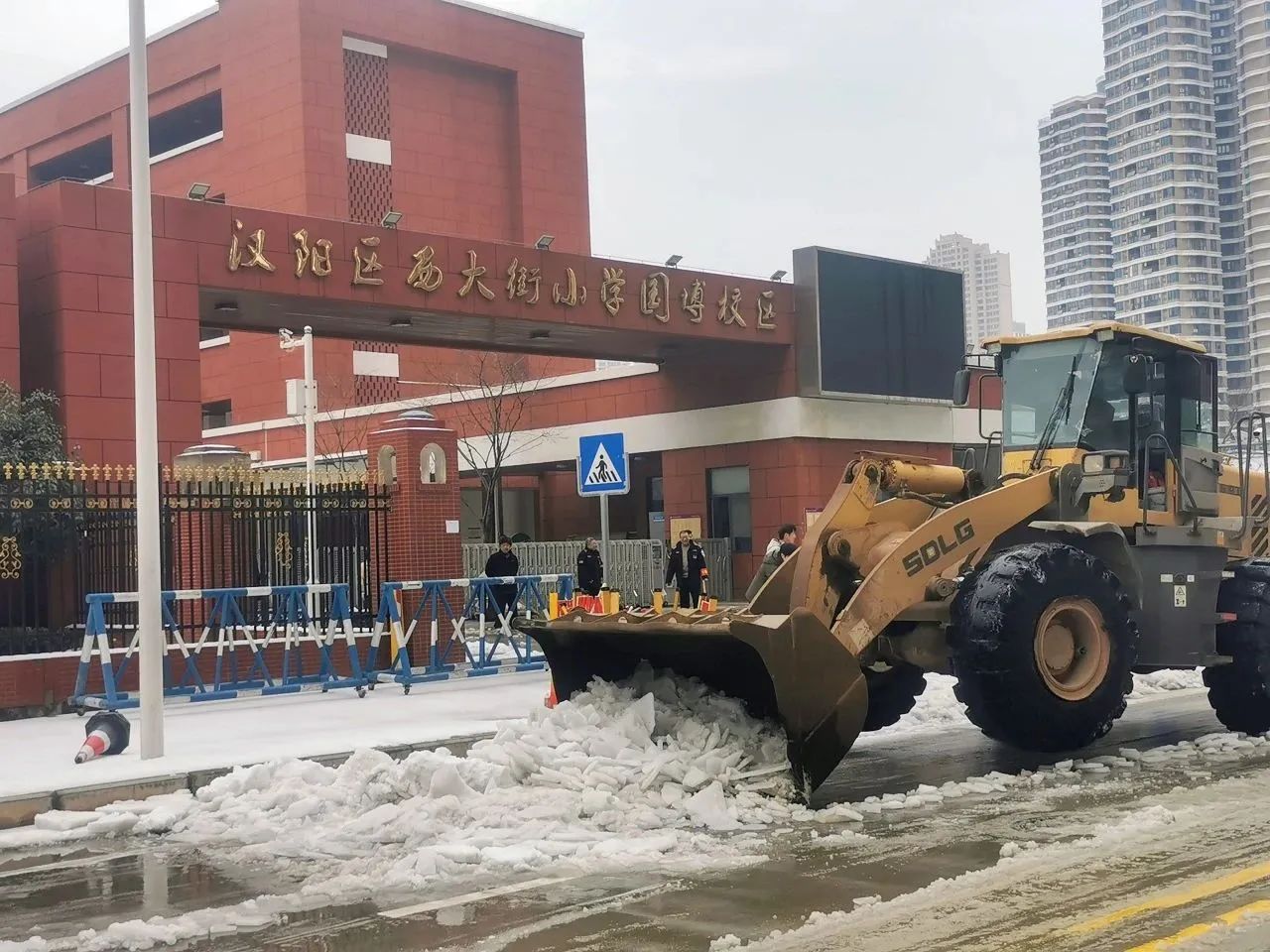 本次應急行動累計出動61人次,鏟車14臺,巡查車輛7臺,撒鹽車輛3臺,撒融雪劑0.5噸,共對五里墩小學、翠微中學、七里小學、武漢市第三中學、西大街至誠小學、墨水湖小學東校區(qū)等八所學校道路的積雪進行了清理,并鏟除路面結(jié)冰。