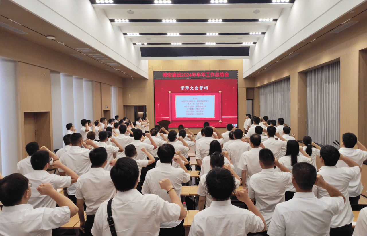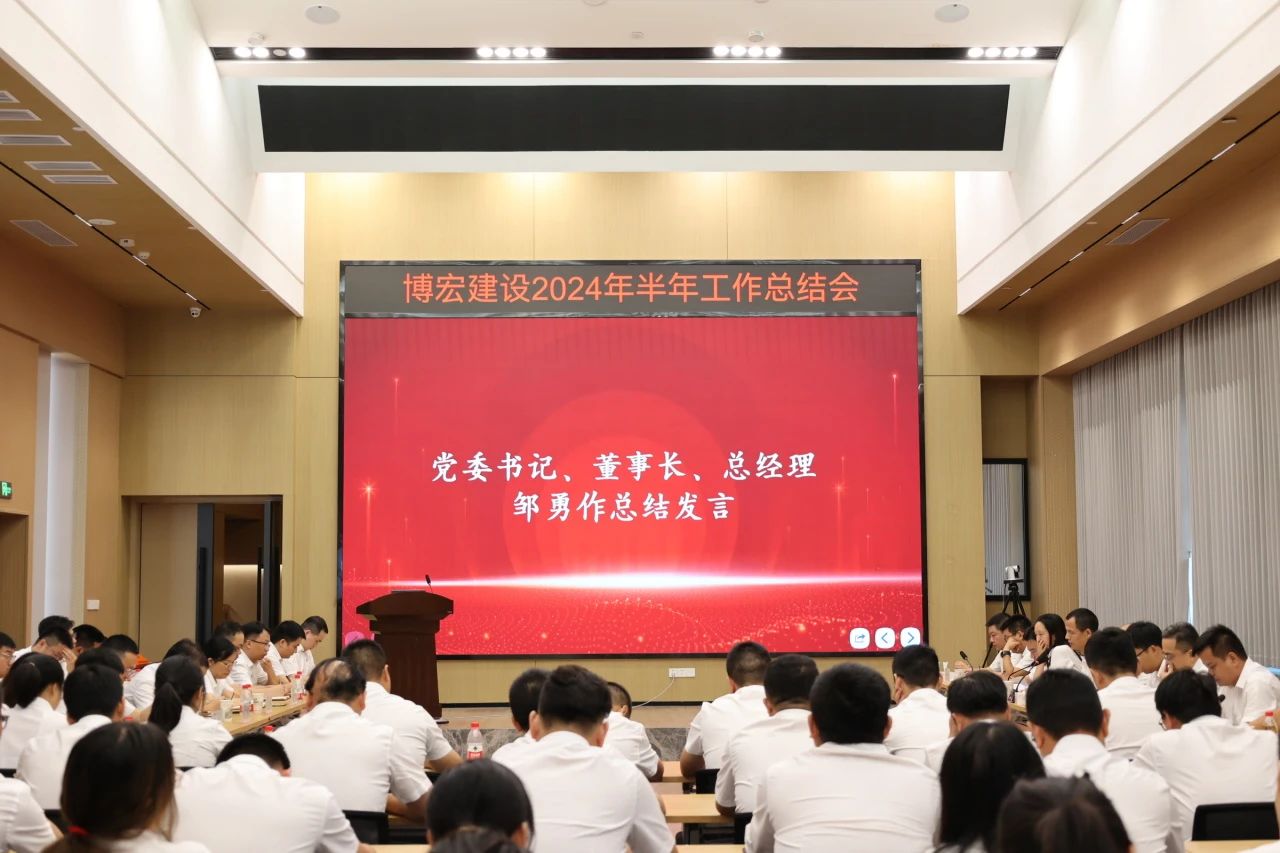 半年總結蓄新力,錨定目標再啟航。7月27日下午,博宏建設集團順利召開2024年半年工作總結會。公司黨委班子、總助、部門及項目部負責人(含副部長)、項目班子成員(生產(chǎn)經(jīng)理、商務經(jīng)理、材料員)共計78人參會。會議由黨委副書記郭一清主持。