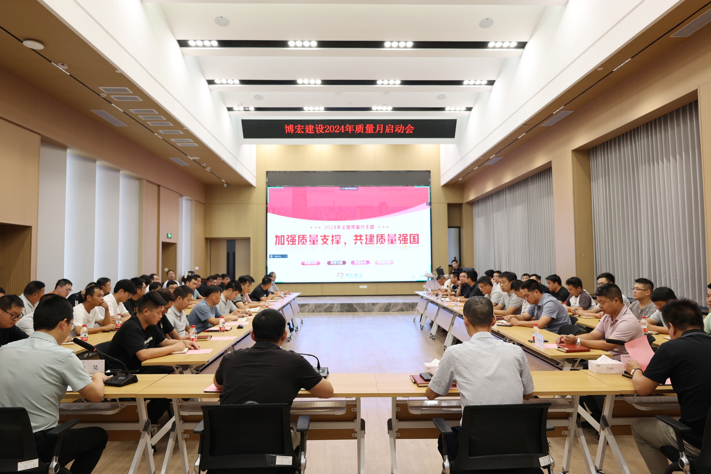 8月29日下午,博宏建設(shè)舉辦以“加強(qiáng)質(zhì)量支撐,共建質(zhì)量強(qiáng)國(guó)”為主題的2024年“質(zhì)量月”啟動(dòng)會(huì),黨委書(shū)記、董事長(zhǎng)、總經(jīng)理鄒勇,總經(jīng)理助理李暉,市內(nèi)外各項(xiàng)目部負(fù)責(zé)人及質(zhì)量崗位人員90余人參與活動(dòng)。會(huì)上,對(duì)“質(zhì)量月”的主題、方針、理念和口號(hào)進(jìn)行了深入宣貫,號(hào)召全體員工進(jìn)一步強(qiáng)化質(zhì)量意識(shí),共同推動(dòng)項(xiàng)目質(zhì)量提升。